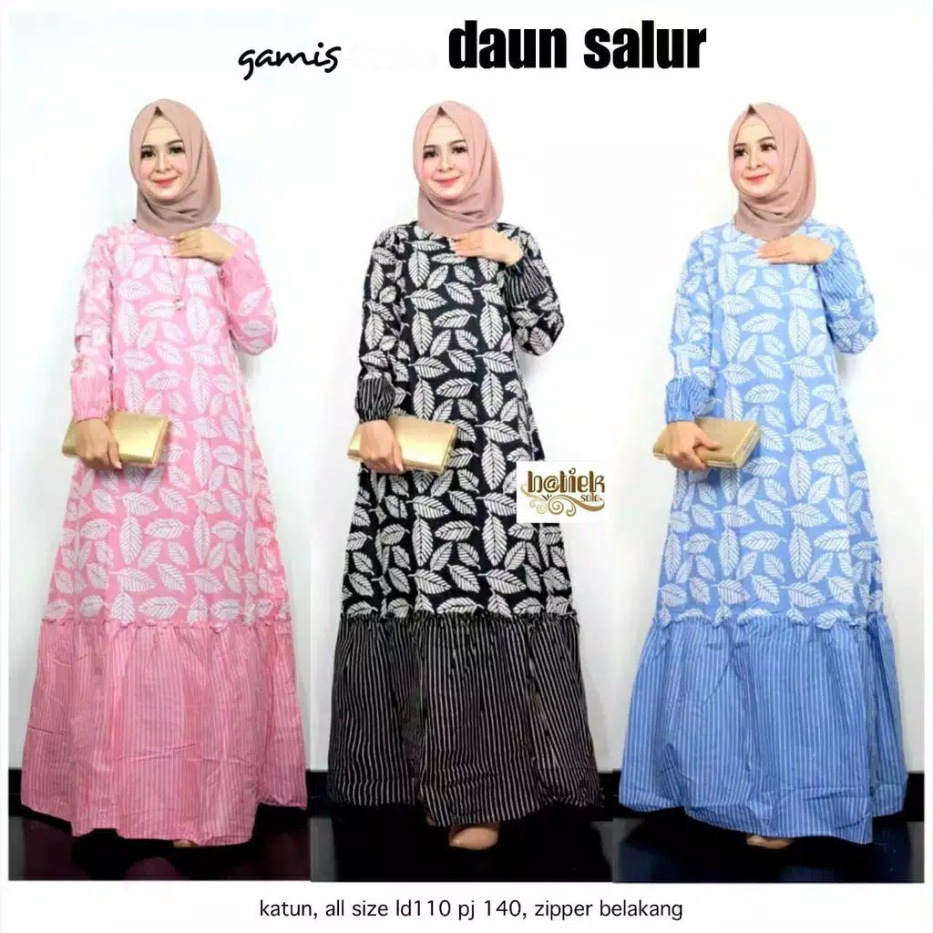 Name: Gamis Daun Salur Batik Cantik Batik Gamis Bagus Seragam Batik Pesta Gamis Syari Cantik Katun Warna