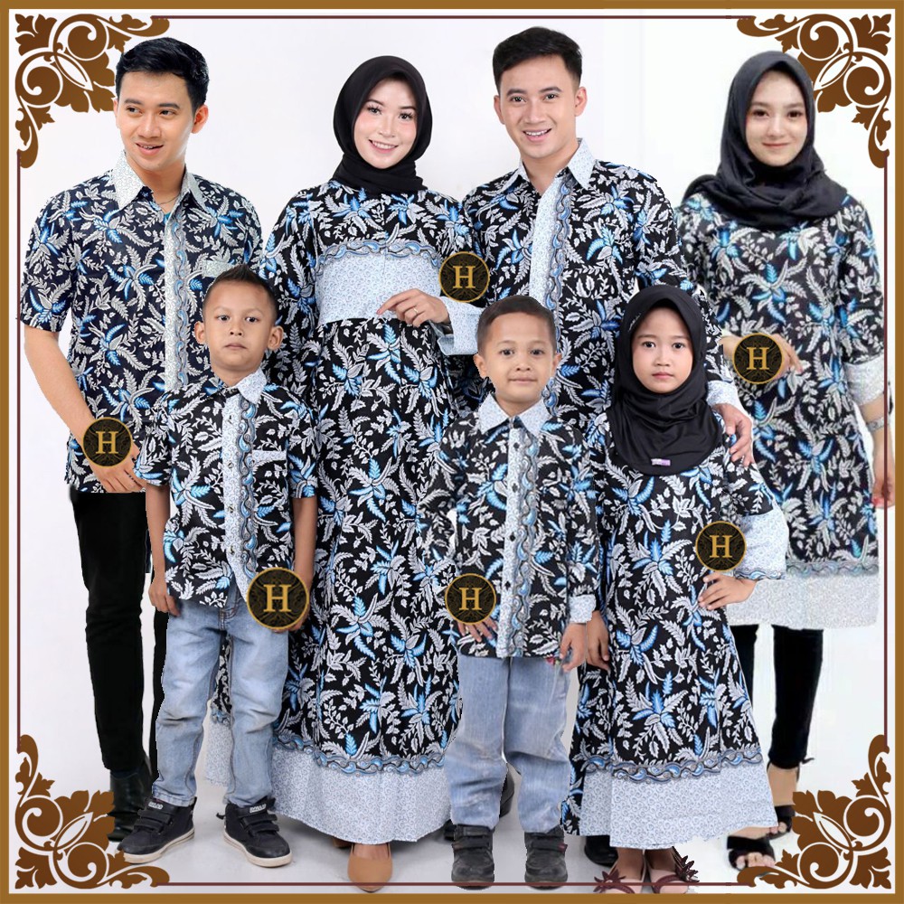 Produsen Pakaian W di Kabupaten Sambas [cod-bisa Terpisah] Batik Couple Sarimbit Keluarga Ayah Ibu Anak Seragam Lengkap Motif Godong Biru dari Tidak Ada Merek Kab. Pekalongan