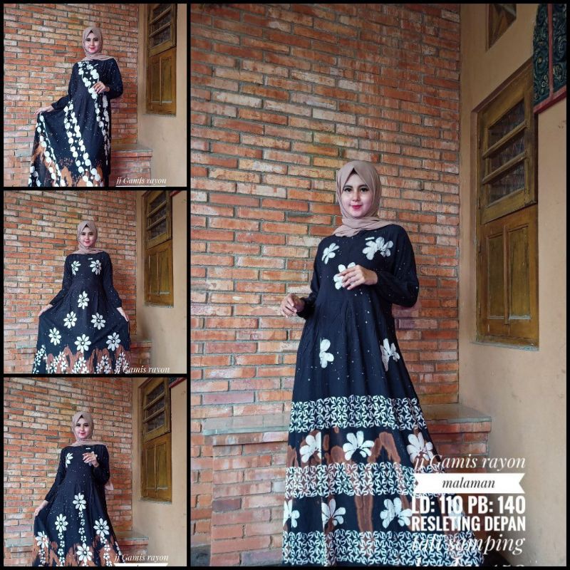 Banting Harga Pakaian W di Kabupaten Kubu Raya Gamis Batik Rayon Hitam Sogan Malaman Busui Tali Samping Resleting Depan dari Daster Batik Pelita Kota Pekalongan