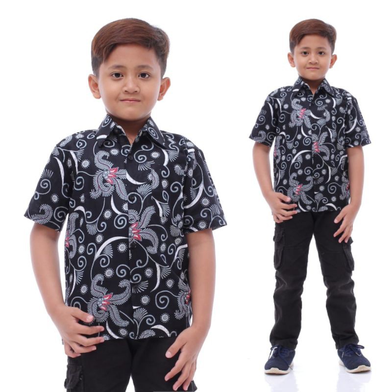 • Kemeja Batik Anak Motif Salju Abu