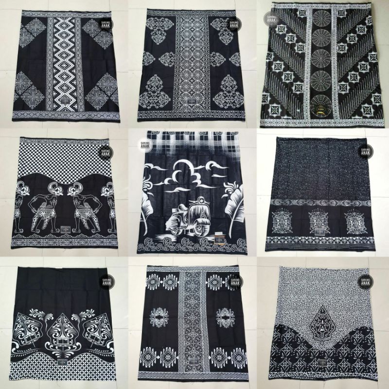 Toko Grosir Fashion M di Kabupaten Sanggau Sarung Batik Anak Usia 7-13 Tahun Monokrom Hitam Putih Sarung Anak Anak Motif Wayang Vespa dari Tidak Ada Merek Kota Pekalongan